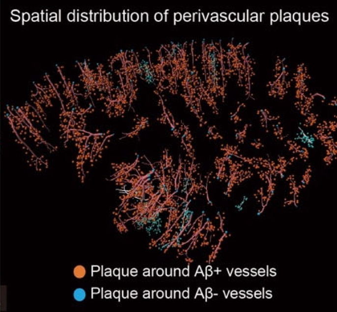 The researchers also found that the density of parenchymal amyloid plaques was lower around Aβ-positive vessels than in other areas, indicating spatially preferential distribution.
