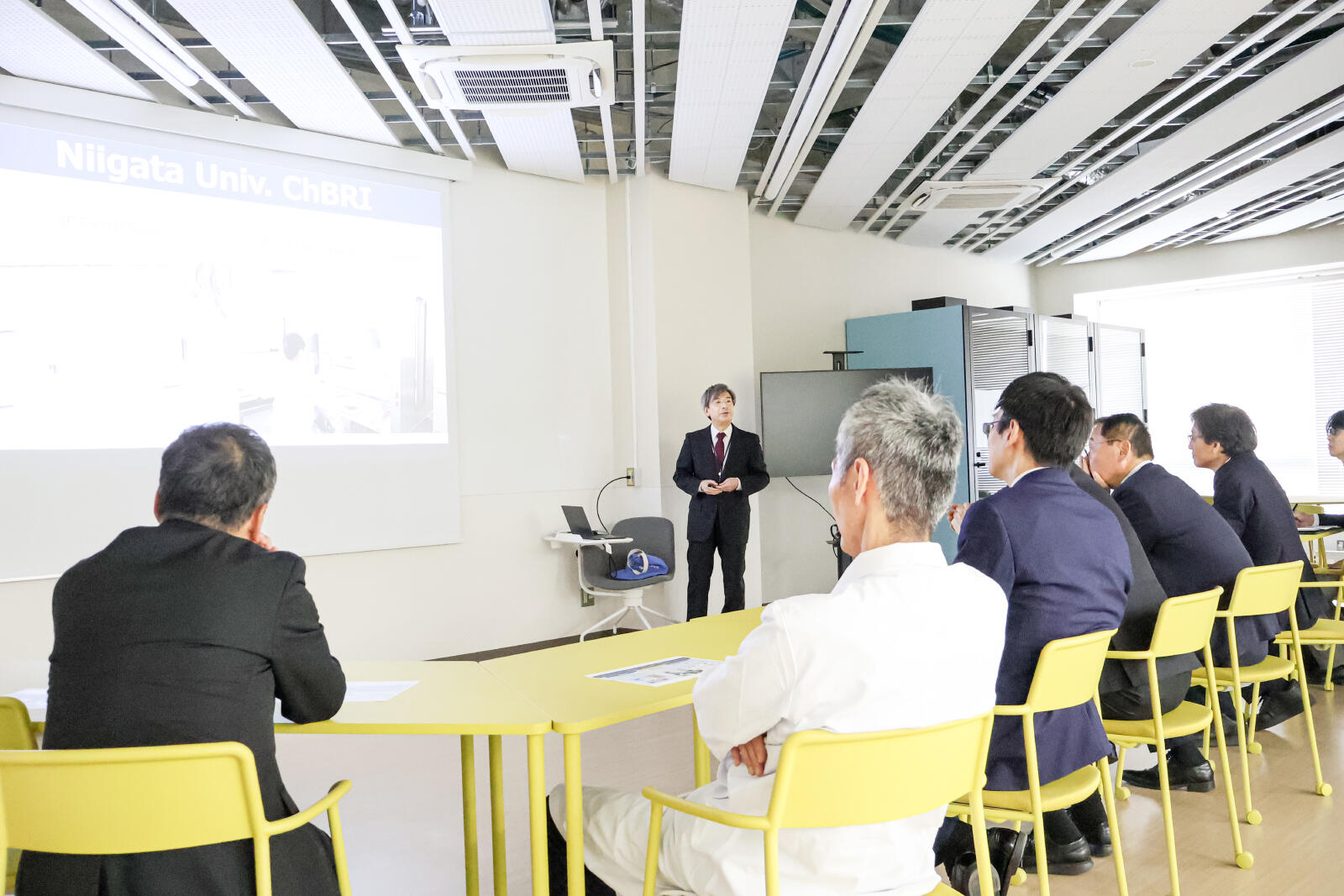 脳研究所における視察では、まず、「脳研究資源イニシアチブ推進センター(ChBRI シブリ)」をご案内しました。脳研究資源イニシアチブ推進センター(ChBRI シブリ)は、脳資源を活用し研究・教育を担う組織として、国際水準での先端的な研究の推進と人材育成に取り組み、イノベーションを起こすことを目的とするセンターであり、令和8年4月より本格稼働を開始しました。