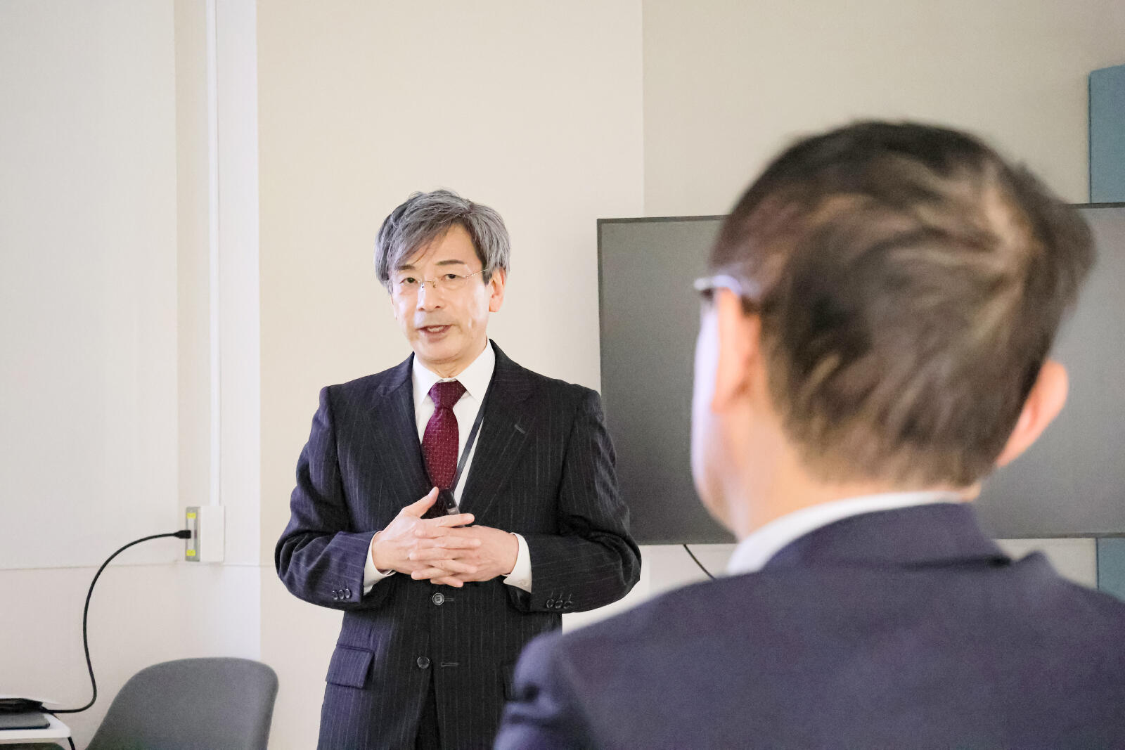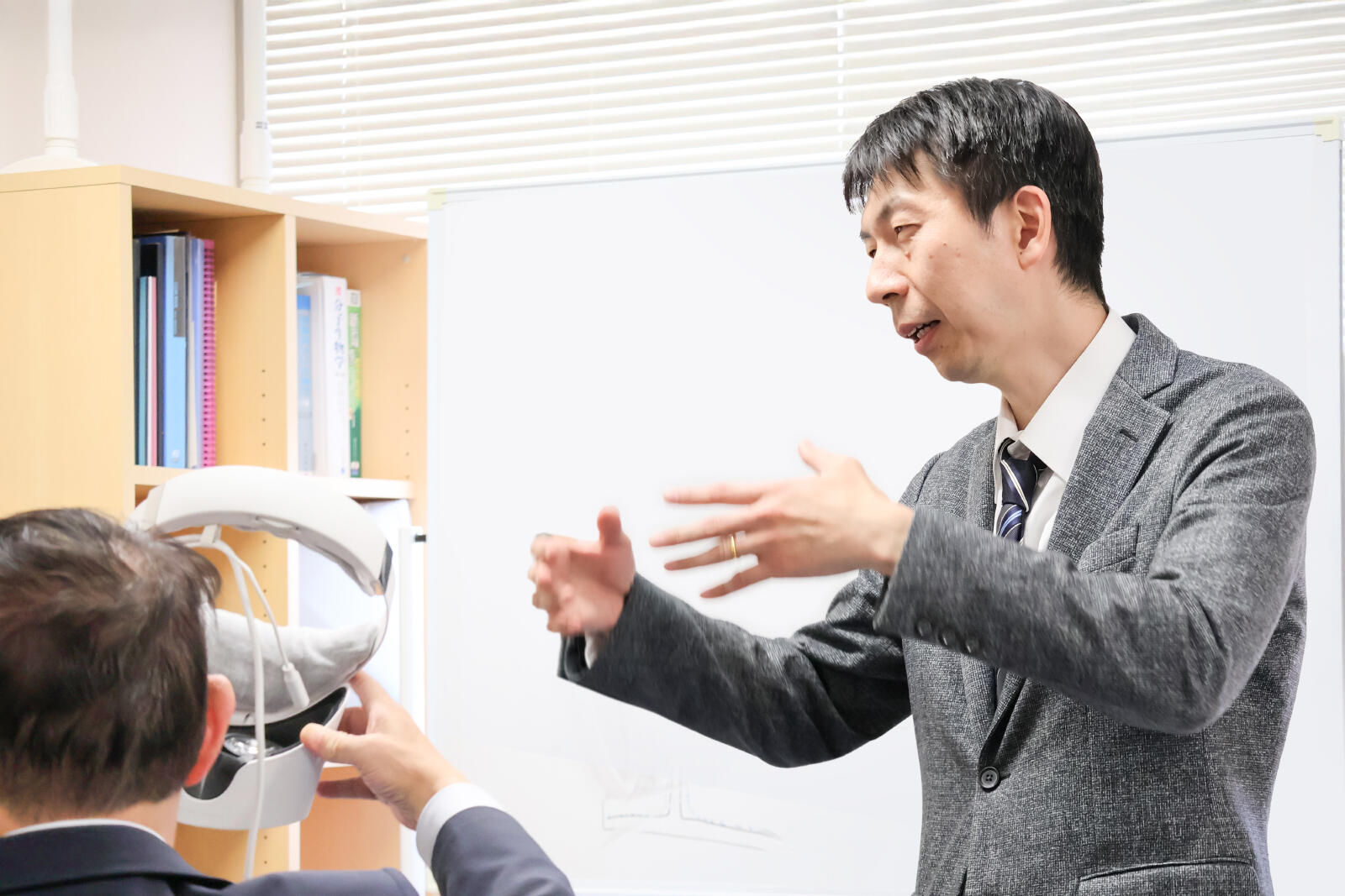 その後、システム脳病態学分野において、田井中一貴教授の案内のもと、組織を透明化した標本や、ゼブラフィッシュの体構造を三次元的に観察できるVR映像、人工知能(AI)を活用した研究について紹介を行いました。これらの最先端技術およびAIを活用した研究の今後の展開に関しても高い関心をお寄せいただき、活発な意見交換が行われました。