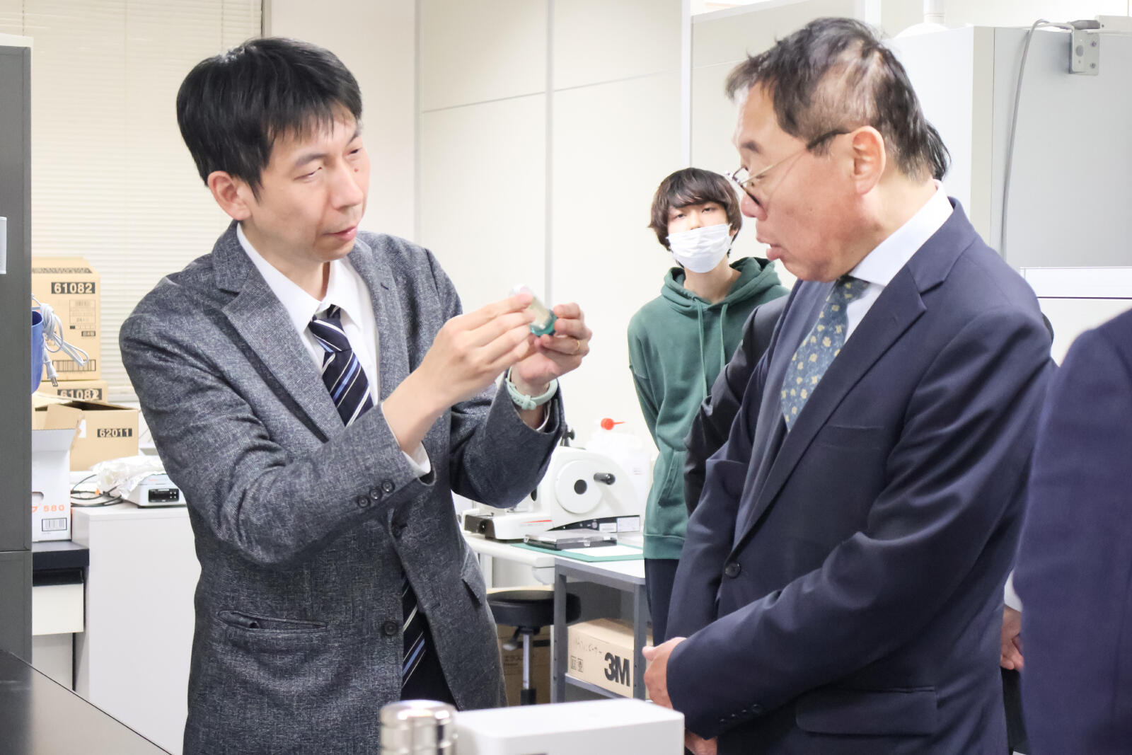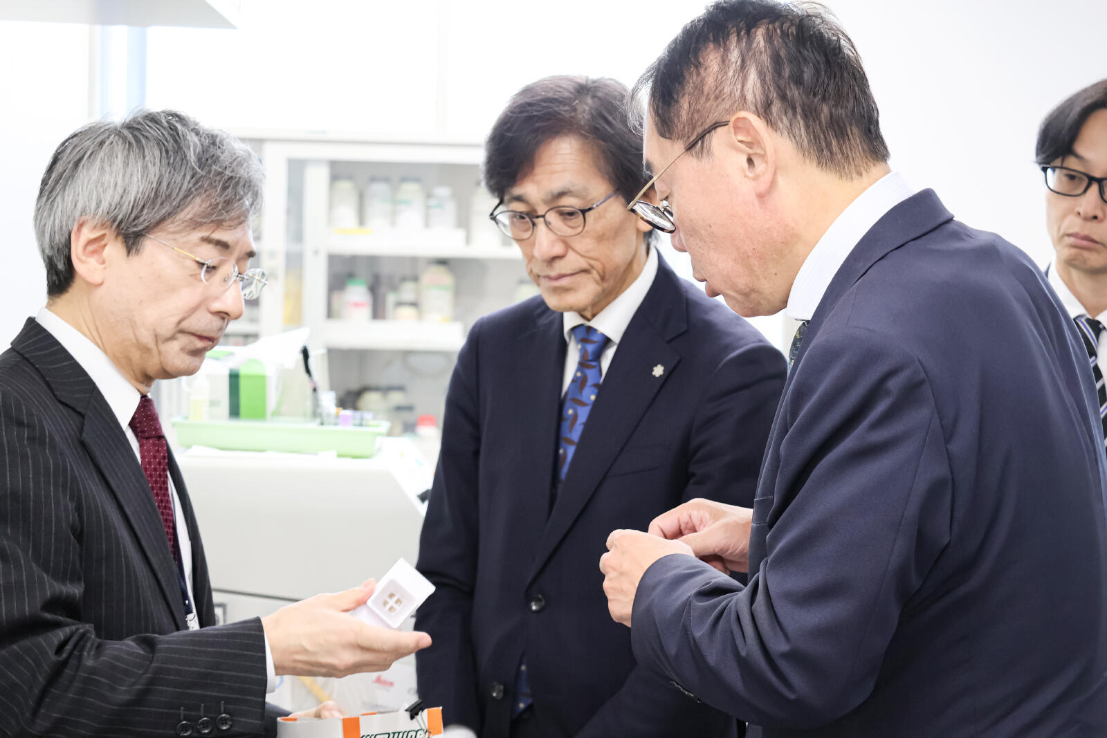 4月21日(火)、文部科学省事務次官の増子宏氏をはじめとする御一行が本学を訪問し、五十嵐キャンパスでの意見交換および日本酒学センターの視察の後、脳研究所に来所されました。