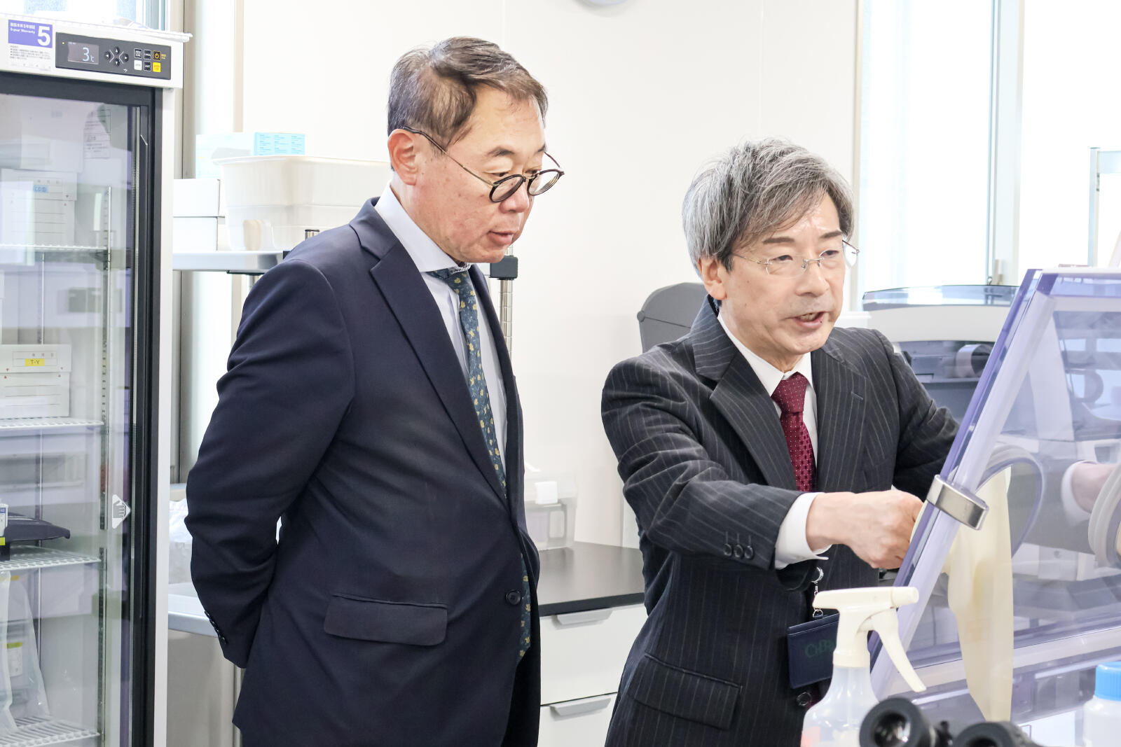 はじめに、病理学分野の柿田明美教授より、同分野の概要およびこれまでの取り組みと実績について説明が行われました。説明に対して多くの質疑応答が交わされ、脳研究資源の利活用や今後の展望について理解を深めていただく機会となりました。続いて、ChBRIの施設内をご視察いただき、実際の標本作製工程や各種設備、生鮮凍結脳を保管するフリーザー室などをご覧いただきました。
